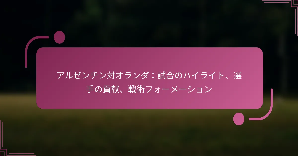 アルゼンチン対オランダ:試合のハイライト、選手の貢献、戦術フォーメーション