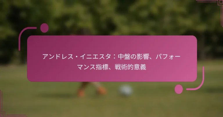 アンドレス・イニエスタはミッドフィールダーとしての深い影響力で知られ、卓越したゲームコントロール、正確なパス、強い勤勉さを示しています。彼のパフォーマンス指標には、高いパス成功率や重要なゴール貢献が含まれ、フィールド上での戦術的な重要性を強調しています。イニエスタの多才さとさまざまなフォーメーションへの適応力は、攻撃と防御の戦略の両方において彼の役割をさらに強固なものにしています。 アンドレス・イニエスタのミッドフィールダーとしての主な貢献は何ですか? アンドレス・イニエスタのミッドフィールダーとしての貢献は、ゲームをコントロールする能力、卓越したパス精度、守備の仕事量、リーダーシップの資質によって特徴づけられています。彼の戦術的な重要性は、キャリアの中での重要な瞬間に明らかであり、彼がプレーしたどのチームにとっても重要な資産となっています。 ゲームのテンポとコントロールへの影響 イニエスタのゲームのテンポへの影響は深く、彼はプレーのペースを支配する独自の能力を持っています。迅速で鋭いパスと、遅くてより慎重なビルドアップの間をシームレスに移行することで、彼はチームメイトのためにスペースと機会を生み出します。 ゲームに対する彼の意識は、必要に応じてテンポを遅くすることを可能にし、ボールの保持とコントロールを維持するのに役立ちます。このスキルは、試合の流れを変えることができる冷静さを維持することが重要な高圧の状況で特に重要です。 さらに、イニエスタのオフ・ザ・ボールの動きは、チームメイトに選択肢を提供し、攻撃における全体的なチームのダイナミクスと流動性を高めます。 パス精度と視野 イニエスタは卓越したパス精度で知られ、重要な試合ではしばしば90%を超えます。彼の視野は、他の選手が見落とすかもしれないパスを見て実行することを可能にし、彼を最高のプレーメイカーにしています。 彼は短いパスと長いパスの両方で優れており、タイトなスペースでのパスや、正確なロングボールでのカウンターアタックを通じて、相手を混乱させ、さまざまな攻撃の道を開きます。 短いパス:迅速で正確、ボール保持にしばしば使用される。 長いパス:戦略的で、守備ラインを破り、速攻を開始することを目的とする。 スルーパス:守備の隙間を利用し、得点機会を生み出すために完璧にタイミングを合わせる。 守備の貢献と仕事量 主に攻撃的ミッドフィールダーであるにもかかわらず、イニエスタの守備の貢献は重要です。彼の仕事量は称賛に値し、しばしば守備をサポートし、ボールを奪い返すために戻ります。 イニエスタの相手へのプレス能力は、相手のリズムを効果的に乱し、チームがボールを取り戻すことを可能にします。彼の戦術的な意識は、戦略的に自分の位置を取ることを可能にし、パスをインターセプトし、プレーを中断させます。 攻撃と防御の両方に貢献するこの二面性は、彼を完全なミッドフィールダーにし、プレーのすべてのフェーズに影響を与えることができる存在にしています。 リーダーシップとチームダイナミクス イニエスタのリーダーシップの資質はキャプテンシーを超えており、彼の勤勉さとプロフェッショナリズムによって模範を示します。彼の冷静な態度は、チームメイトの間に安定感と自信を育みます。 彼はしばしば異なる選手間の架け橋として機能し、チーム内のコミュニケーションと結束を促進します。この多様な才能を統一する能力は、全体的なパフォーマンスと士気を高めます。 さらに、彼の高圧の試合での経験は、若い選手を導くことを可能にし、彼らの成長に寄与する貴重な洞察を与えます。 キャリアのハイライトと重要な瞬間 イニエスタのキャリアは、2010年のFIFAワールドカップでのスペインの勝利における重要な役割を含む、素晴らしいハイライトで満ちています。彼は決勝で勝利のゴールを決め、この瞬間は彼の国民的英雄としての地位を確固たるものにしました。 クラブフットボールでは、彼のFCバルセロナへの貢献は、複数のUEFAチャンピオンズリーグやラ・リーガのタイトルを獲得するのに役立ちました。決勝での得点など、重要な瞬間にパフォーマンスを発揮する能力は、チームの成功に対する彼の重要性を示しています。 彼のキャリアの重要な瞬間を分析すると、決定的なパフォーマンスの一貫したパターンが浮かび上がり、彼がサッカー史上最も偉大なミッドフィールダーの一人であるという評判を裏付けています。 アンドレス・イニエスタの効果を定義するパフォーマンス指標は何ですか? アンドレス・イニエスタのミッドフィールダーとしての効果は、高いパス成功率、重要なゴール貢献、強いドリブルスキルの組み合わせによって定義されます。これらの指標は、彼の技術的な能力だけでなく、フィールド上での戦術的な重要性を強調し、攻撃と防御の両方のプレーに影響を与えます。 パス成功率と