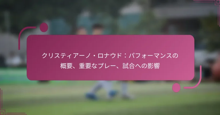 クリスティアーノ・ロナウドは、歴史上最も prolific なサッカー選手の一人として際立っており、彼の卓越した才能を際立たせる印象的なゴールとアシストの記録を誇っています。重要なプレーや一貫した得点を通じて試合に影響を与える能力は、彼のレガシーを定義するだけでなく、多くの試合の結果にも大きな影響を与えています。彼の素晴らしいスキルとリーダーシップにより、ロナウドはチームメイトのパフォーマンスを引き上げ、対戦相手の戦略に挑戦します。 クリスティアーノ・ロナウドの全体的なパフォーマンスの概要は何ですか? クリスティアーノ・ロナウドの全体的なパフォーマンスは、さまざまな大会でのゴールとアシストの素晴らしい記録を持つ、歴史上最も prolific なサッカー選手の一人として彼を示しています。重要なプレーや一貫した得点を通じて試合に影響を与える能力は、彼のスポーツ界でのエリートとしての地位を確固たるものにしています。 主要なパフォーマンス指標:ゴール、アシスト、パス精度 ロナウドの主要なパフォーマンス指標は、彼の卓越した得点能力とプレーメイキングスキルを際立たせています。彼のキャリアを通じて、彼は常に高いゴール数を達成し、トップリーグではシーズンごとに20ゴールを超えることが多いです。 ゴール:通常、シーズンあたり20-30ゴールを記録します。 アシスト:シーズンあたり5-10アシストを定期的に提供します。 パス精度:競技試合で約75-85%のパス精度を維持します。 シーズンと大会におけるパフォーマンストレンド ロナウドのパフォーマンストレンドは、年齢、リーグ、競技レベルに基づく変動を示しています。彼の初期の年には、爆発的なスピードと敏捷性を示し、高い得点率を達成しました。成熟するにつれて、彼のスタイルは適応し、ポジショニングとフィニッシングに重点を置くようになりました。 シーズンごとのパフォーマンスの変化は、リーグの競争力やチームメイトの質を反映することが多いです。近年、彼は生のゴール数にわずかな減少を示していますが、依然として重要な試合でのプレーヤーです。 他のトップ選手との比較 ロナウドをリオネル・メッシやネイマールなどの同時代の選手と比較すると、明確な違いが浮かび上がります。メッシはプレーメイキングやドリブルで称賛されることが多い一方で、ロナウドの強みは得点力と空中戦の能力にあります。 選手 シーズンあたりのゴール シーズンあたりのアシスト パス精度 クリスティアーノ・ロナウド 20-30 5-10 75-85% リオネル・メッシ 25-35 10-15 80-90% ネイマール 15-25 8-12 75-85% 怪我がパフォーマンスに与える影響 怪我は時折ロナウドのパフォーマンスに影響を与え、プレー時間の減少や統計の低下を引き起こすことがあります。それにもかかわらず、彼は回復力を示し、しばしば迅速にフォームに戻ります。 ....