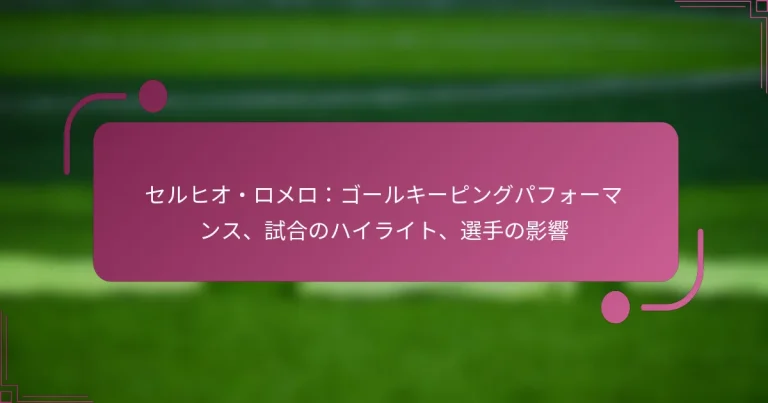 セルヒオ・ロメロは、卓越したゴールキーピングスキルで知られており、驚異的なシュートストッピング能力と戦略的な意思決定を含んでいます。彼のパフォーマンスは、試合の結果を決定づける重要なセーブを特徴としており、プレッシャーの中での彼のスキルと冷静さを示しています。技術的な能力を超えて、ロメロのリーダーシップと効果的なコミュニケーションはチームのダイナミクスを向上させ、彼をフィールド上で欠かせない存在にしています。 セルヒオ・ロメロのゴールキーピングパフォーマンスを定義するものは何ですか? セルヒオ・ロメロのゴールキーピングパフォーマンスは、卓越したシュートストッピング能力、戦略的な意思決定、そして印象的な身体的特性によって特徴づけられます。彼の貢献はチームのダイナミクスに大きな影響を与え、クリーンシートを達成し、失点を最小限に抑えることがよくあります。 主要統計:セーブ、失点、クリーンシート ロメロの主要統計は、彼のゴールキーパーとしての効果を強調しています。彼は常に高いセーブ率を維持しており、しばしば70%を超え、ターゲットに対する多くのシュートを止める能力を反映しています。 彼のクリーンシート記録は注目に値し、多くのシーズンで二桁のクリーンシートを達成しており、ゴールでの信頼性を示しています。さらに、彼の失点平均は低く、彼がプレーしたリーグの中でトップゴールキーパーの一人に位置しています。 技術的スキル:ポジショニング、反射神経、配球 ロメロの技術的スキルは、彼の成功の基盤です。彼のポジショニングはしばしば称賛され、効果的に角度をカバーし、相手の得点機会を減少させます。彼は重要な瞬間にどこにいるべきかを鋭く感じ取ることができ、シュートストッピング能力を高めています。 彼の反射神経は鋭く、予期しないシュートに迅速に反応することができます。この敏捷性は、ボールを正確に配球する能力によって補完され、スローやキックを通じてチームの迅速なトランジションを促進します。 ゲームインテリジェンス:意思決定と予測 ゲームインテリジェンスは、ロメロのパフォーマンスの重要な側面です。プレッシャーの中での彼の意思決定は称賛に値し、ラインを離れるべき瞬間や留まるべき瞬間を正しく選ぶことがよくあります。このゲームを読む能力は、彼がプレーを予測し、それに応じて反応することを可能にします。 ロメロの予測スキルは、相手の動きを予測するのに役立ち、ゴールでの強力な存在感を生み出します。ハイステークスの試合での経験は、この側面を磨き、重要な状況で一貫して良いパフォーマンスを発揮できるようにしています。 身体的特性:敏捷性、強さ、持久力 ロメロの身体的特性は、彼のゴールキーピングの能力に大きく寄与しています。彼の敏捷性は、さまざまな角度からのシュートをセーブするために必要な迅速な横移動を可能にします。この敏捷性は、セットプレー中に攻撃者を抑えるための強さによって補完されます。 持久力も重要な要素であり、ロメロは試合を通じて高いパフォーマンスを維持し、試合の後半でも集中力を保ち、効果的であることを示しています。 心理的要因:自信とプレッシャー下での冷静さ 心理的要因は、ロメロのゴールキーピングにおいて重要な役割を果たします。彼の自信は、長年の経験を通じて築かれ、ストレスに屈することなくプレッシャーの中でパフォーマンスを発揮することを可能にします。この精神的な強さは、ペナルティシュートアウトや重要な試合の瞬間に不可欠です。 プレッシャーの中でのロメロの冷静さは、最も重要な瞬間に冷静さを保ち、重要なセーブを行う能力に表れています。この精神的なレジリエンスは、彼自身に利益をもたらすだけでなく、チームメイトにも自信を与え、全体的なチームパフォーマンスを向上させます。 セルヒオ・ロメロの試合のハイライトは何ですか? セルヒオ・ロメロの試合は、重要なセーブや試合の結果を決定づける瞬間によって特徴づけられます。彼のパフォーマンスは、スキル、冷静さ、そして重要な状況での対応能力の組み合わせを示しています。 注目すべきセーブと重要な瞬間 ロメロは、ハイステークスの試合でチームを競争に留めるための数多くの際立ったセーブを行ってきました。例えば、ノックアウトステージの試合での強力なシュートに対する反射的なセーブは、彼の迅速な意思決定と敏捷性を示しています。このような瞬間は、彼の技術的な能力を強調するだけでなく、チームメイトの自信を高める役割も果たします。 ペナルティシュートアウトでは、ロメロはシュートを打つ選手にとって手強い相手であり、試合をよく読み、正しい方向に飛び込むことが多いです。重要な試合でのペナルティセーブの能力は、彼をクラッチゴールキーパーとしての評判を得る要因となり、緊張した状況での貴重な存在にしています。 試合を決定