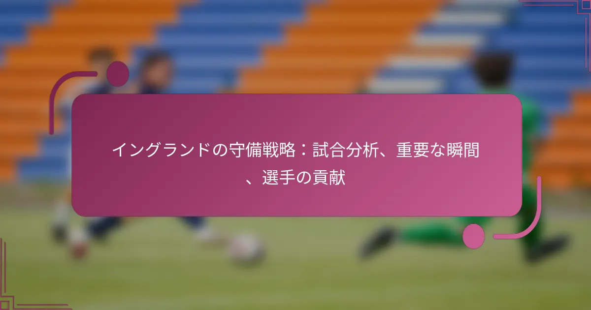 イングランドの守備戦略:試合分析、重要な瞬間、選手の貢献