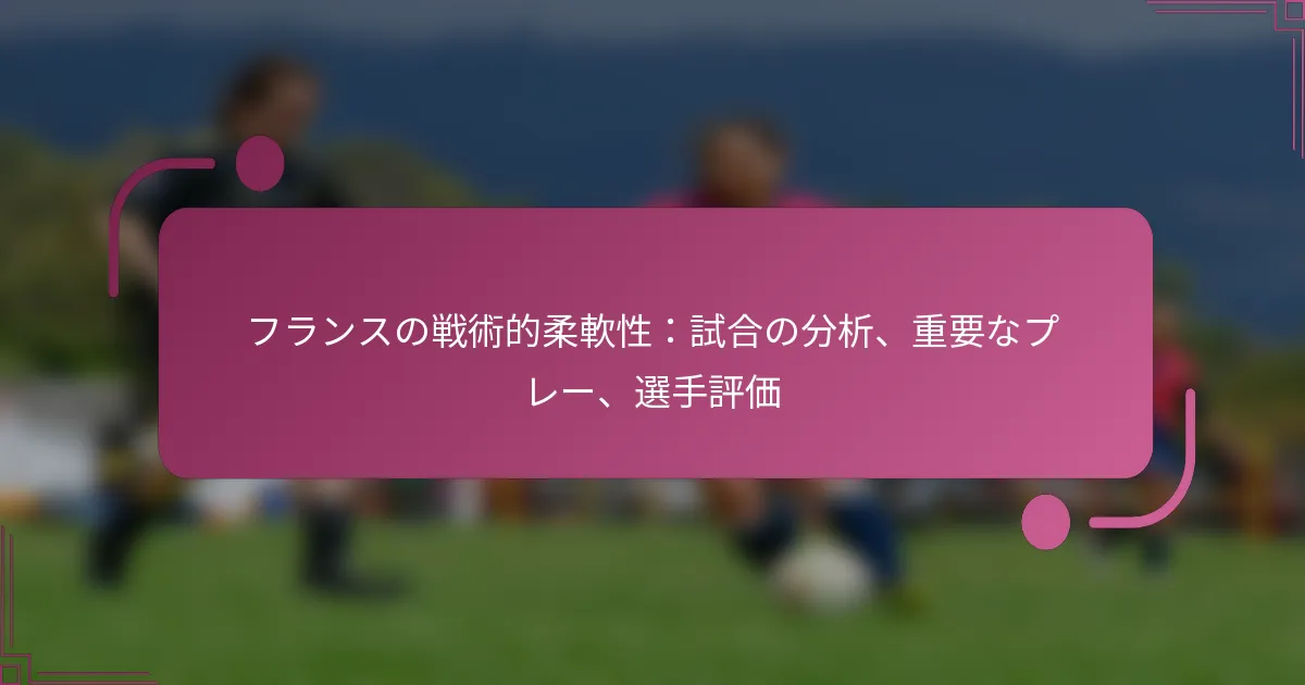 フランスのサッカーにおける戦術的柔軟性は、チームがさまざまな対戦相手や試合状況に応じて戦略やフォーメーションを調整する能力を強調しています。この適応力は、パフォーマンスを最大化し、ポジティブな結果を確保するために不可欠です。試合の分析を行うことで、重要なプレーや選手の評価がどのように戦略的アプローチに寄与し、最終的に試合の結果に影響を与えたかが明らかになります。
