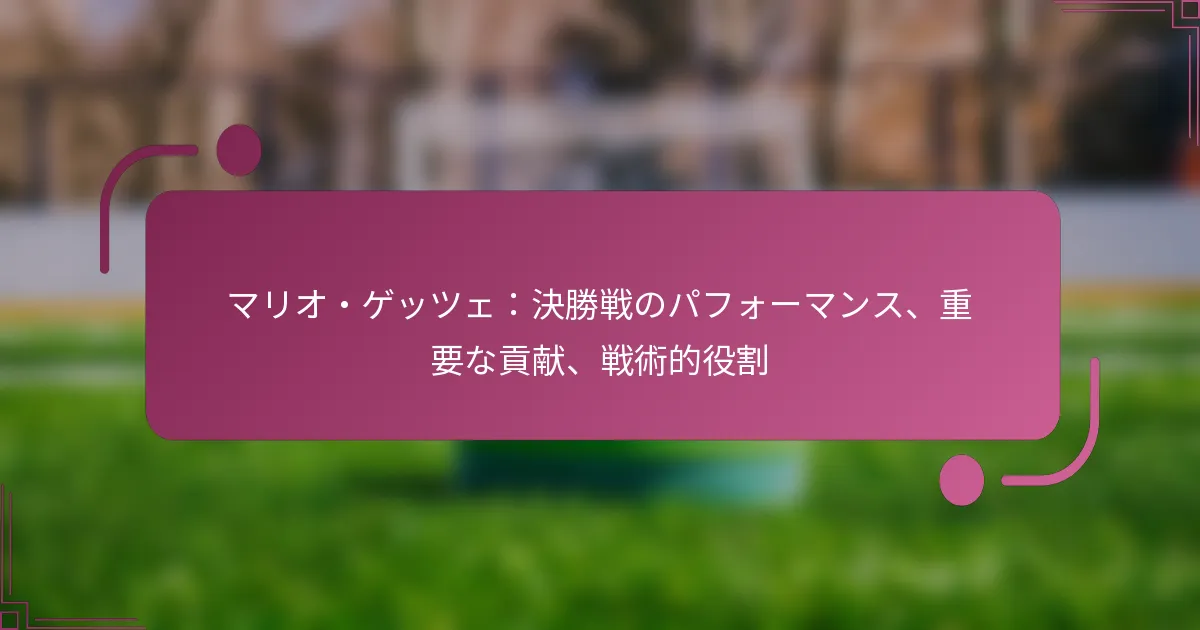 マリオ・ゲッツェ:決勝戦のパフォーマンス、重要な貢献、戦術的役割