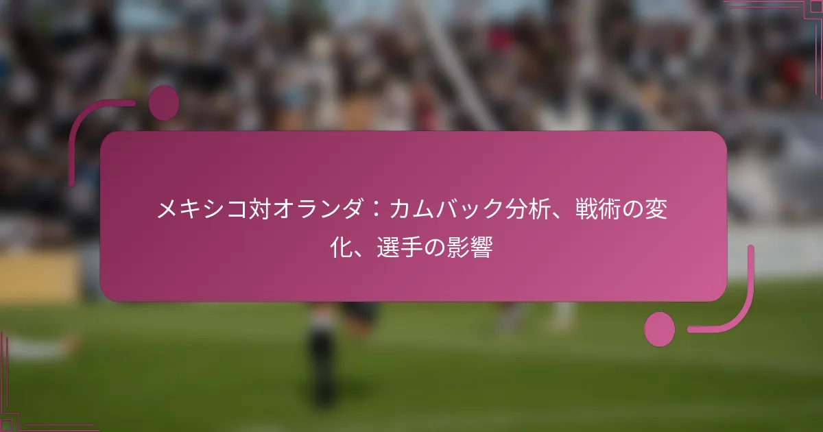 メキシコ対オランダの試合では、特にカムバックの段階で結果に大きな影響を与えた重要な瞬間がいくつかありました。戦術の変化、目立った選手のパフォーマンス、心理的要因が試合のダイナミクスを形成する上で重要な役割を果たしました。