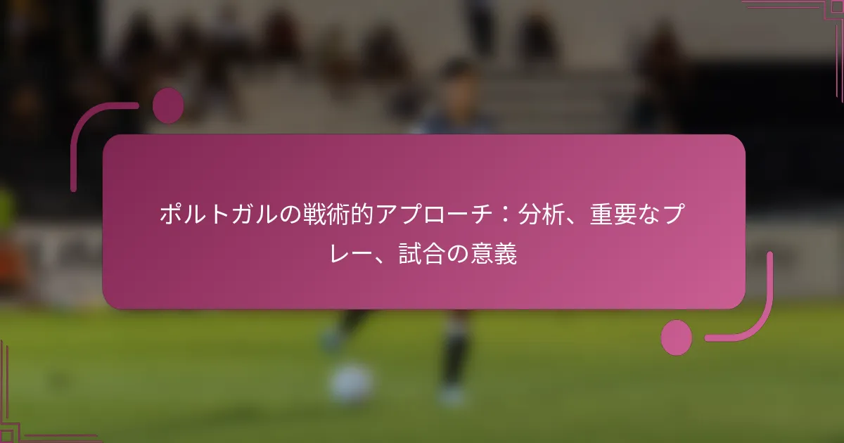 ポルトガルのナショナルサッカーチームは、構造化されたフォーメーションと効果的なプレスによって特徴づけられるダイナミックな戦術アプローチを示しています。最近のパフォーマンスは、試合の結果に影響を与え、戦略的な深さを反映する重要なプレーの重要性を強調しています。今後のトーナメントに向けて、これらの要素を理解することは、国際舞台での潜在的な成功を分析する上で重要です。