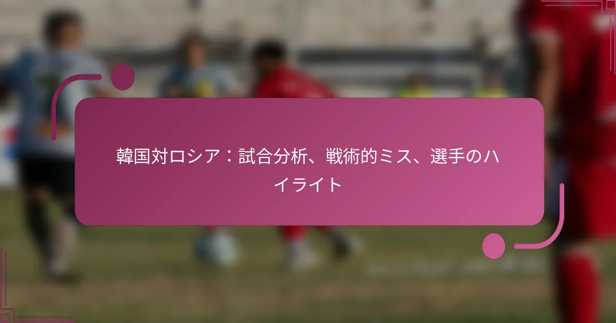 韓国とロシアの両チームは、試合中に顕著な戦術的ミスを示し、全体的なパフォーマンスや得点機会に影響を与えました。韓国は守備の隙に苦しみ、ロシアはミッドフィールダーの組織の問題に直面し、フォーメーションや重要な選手のポジショニングミスを引き起こしました。