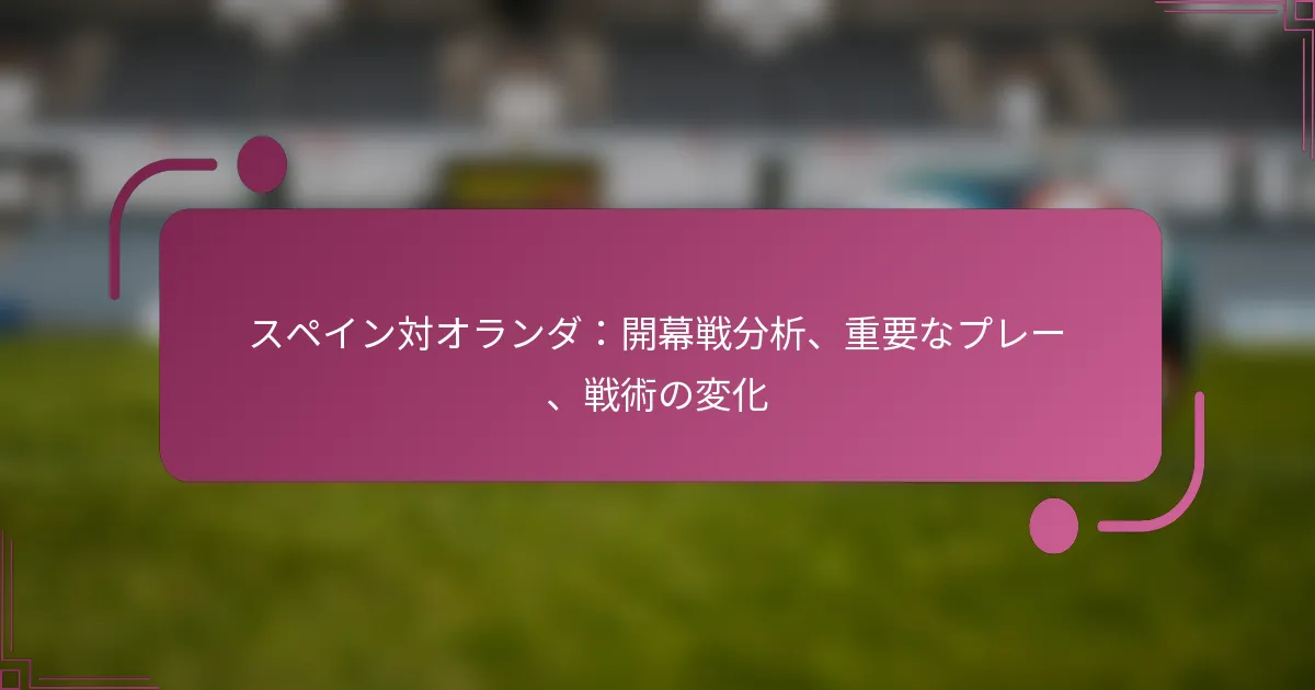スペインとオランダの開幕戦は、試合の結果を形作る重要な瞬間によって特徴づけられました。重要なプレーには、決定的なゴールや戦略的な守備の動きが含まれ、両チームが試合を通じて採用した戦術的な変化が際立ちました。これらの適応は、個々のパフォーマンスだけでなく、フィールド全体のダイナミクスにも影響を与え、魅力的で競争力のある対戦を生み出しました。