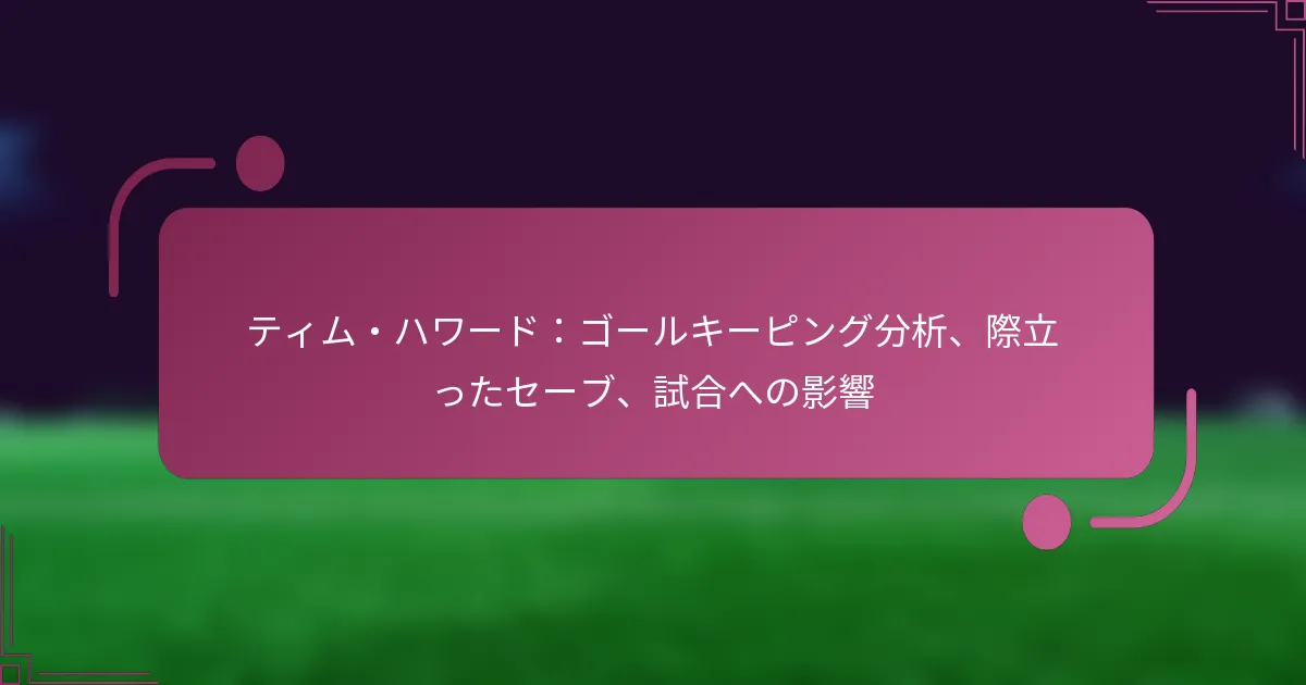 ティム・ハワードは、その卓越したゴールキーピングスキルで知られており、特に重要な試合での際立ったセーブが強調されています。プレッシャーの中でのパフォーマンスは、彼をワールドカップとクラブ競技の両方で伝説的な存在にしました。